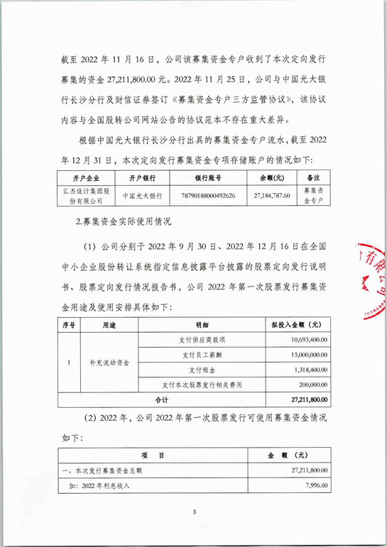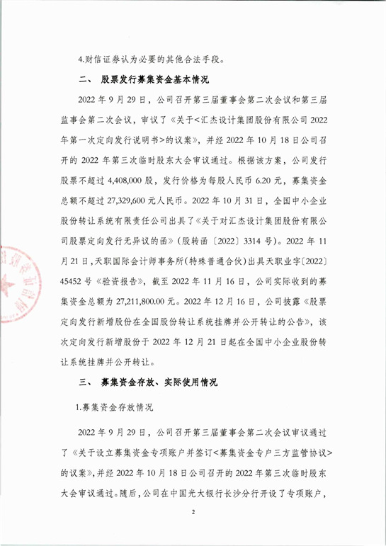 財(cái)信證券關(guān)于匯杰設(shè)計(jì)集團(tuán)股份有限公司2022年年度募集資金存放與使用情況的專項(xiàng)核查報(bào)告