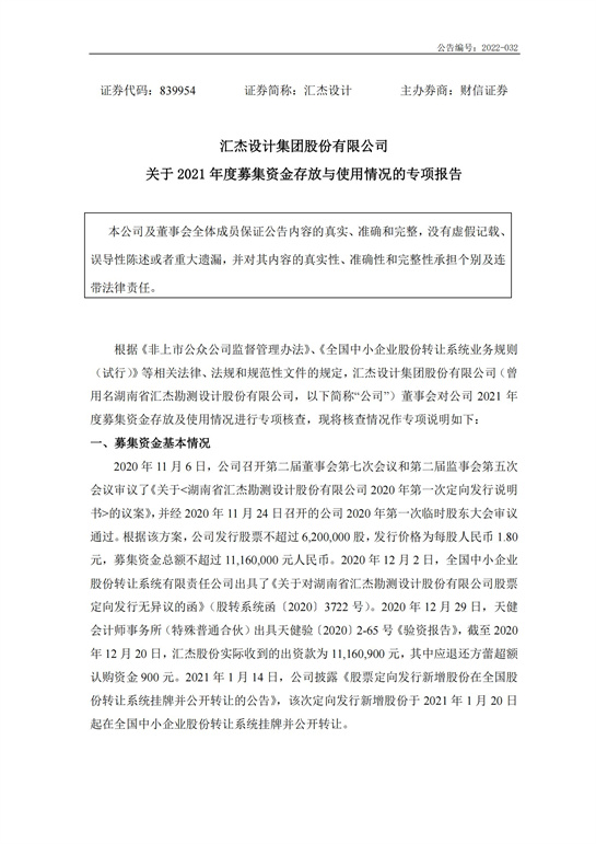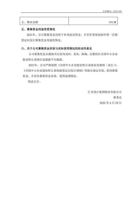 關(guān)于2021年度募集資金存放與使用情況的專項報告